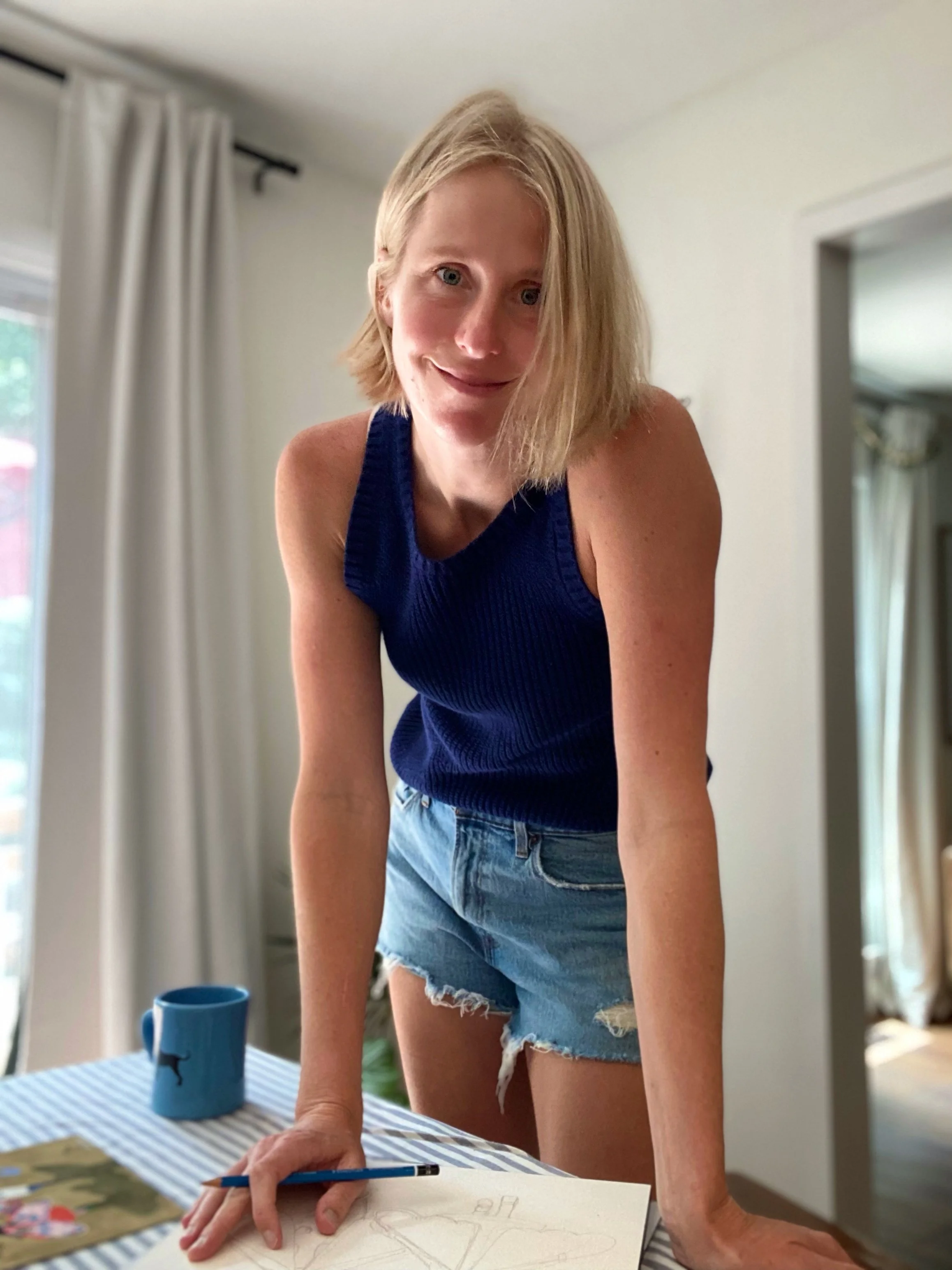 “Becoming a mother inspired me to revisit my passion for drawing after 14 years in the Coast Guard. Watching a child grow makes you realize how quickly time passes. Today, my illustrations are largely inspired by simple living, the changing seasons, motherhood…. I hope my illustrations inspire viewers to slow down and take notice of the ‘little daily miracles,’ as Virginia Woolf calls them, like lighting a candle for dinner or feeling the weight of a sleeping child on your chest.”